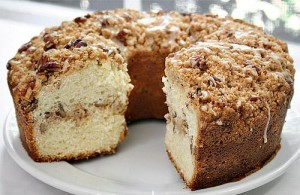 - Butter the baking dish well and spread the batter evenly. In a small dish, mix the sugar and cinnamon together.